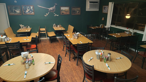The Roadrunner Cafe is our on-site cafe serving Breakfast and Dinner from Wednesday through Sunday. Dine In or Carry Out our delicious meals, cooked fresh each day.